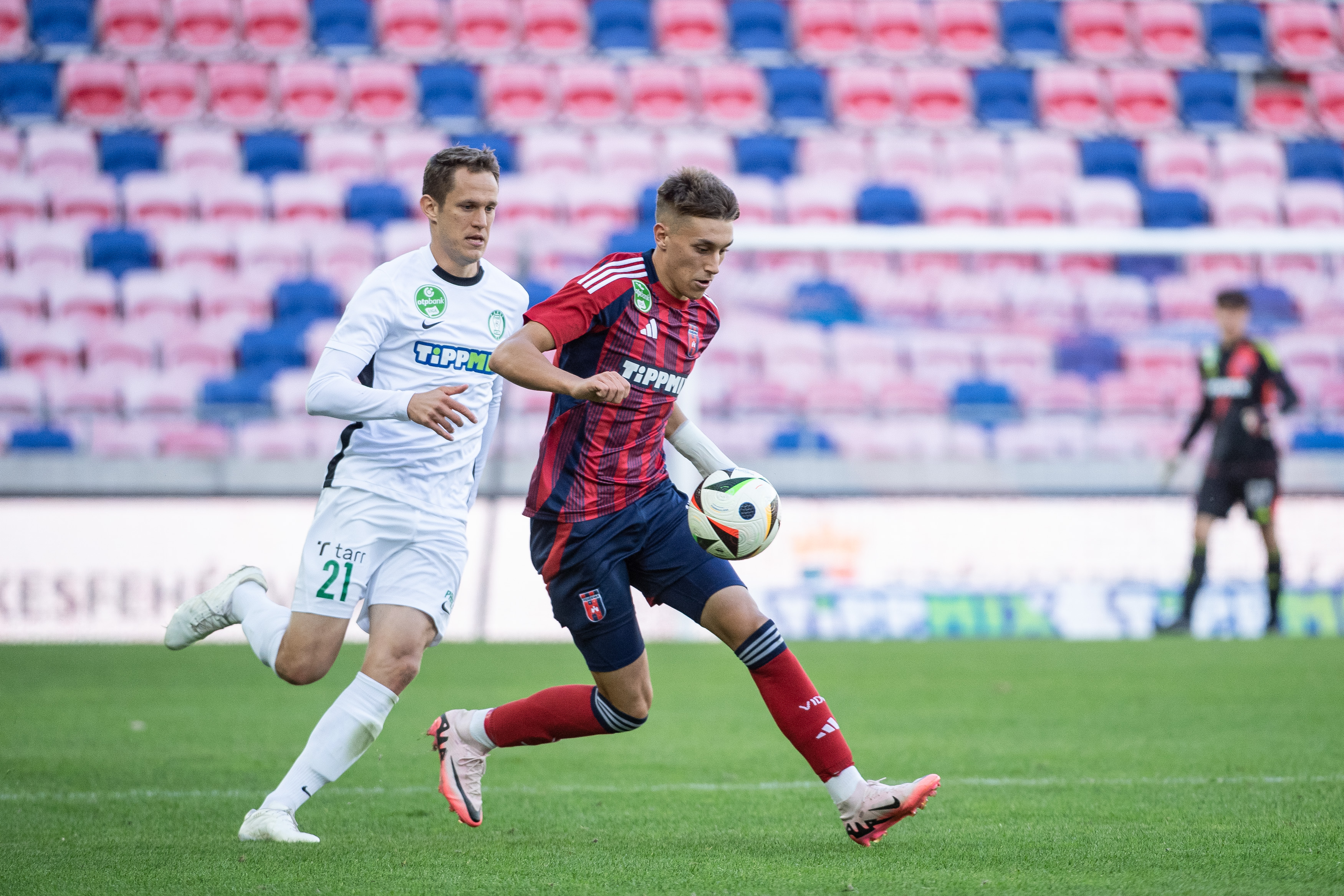 Seven minutes later, the visitors again threatened, Haraszti curled in a free kick inside the box, Szabó's header over the top. At the other end, Milicevic and Papp clashed as they fought for the ball, and the home side had a free kick, which Larsen headed towards goal from 14 metres, Simon headed over from a corner. In the 33rd minute, Dala had to save again as Győrfi shot from 11 metres. Five minutes before the break, Barna Tóth took a shot from 34 metres out that went over the top bar. In the 45th minute, we took the lead with a rarely seen big goal: Filip Holender struck the ball into the net from 19 metres out (1-0).