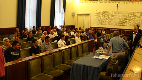 Még tíz perc van kezdésig, az érdeklődők szép számmal gyülekeznek a Városháza Nagytanácstermében.