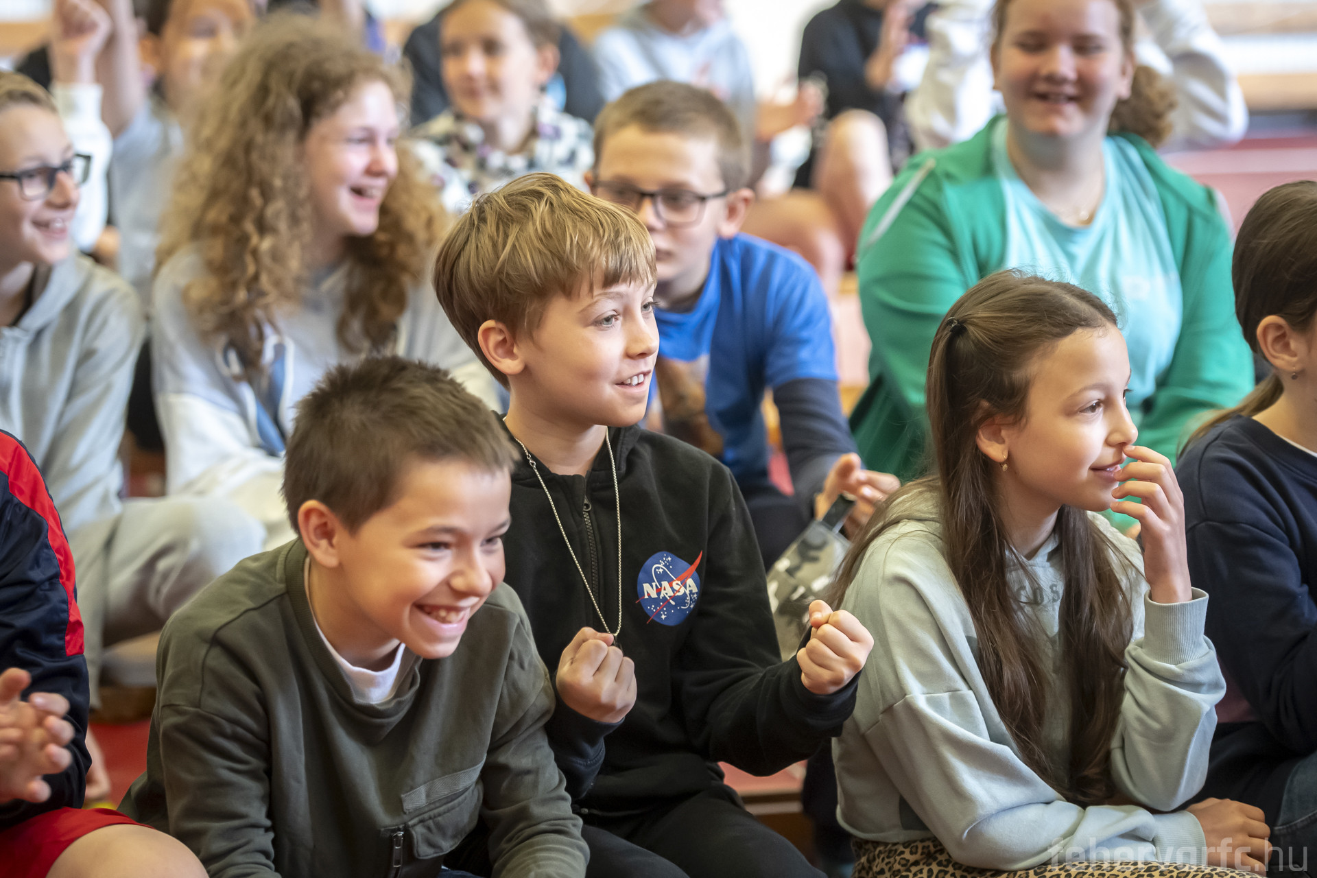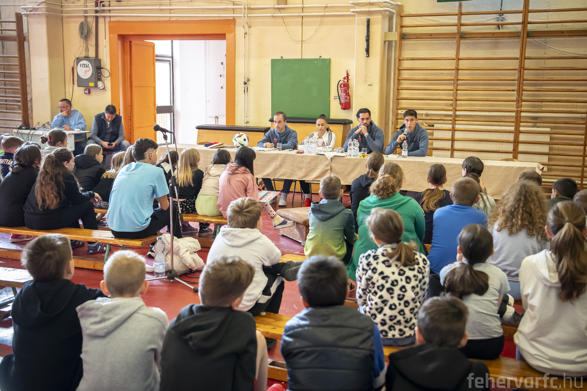 Az iskola tornatermében több mint 70 alsó és felső tagozatos diák várta labdarúgóinkat, akik kezdésként a felnőtt fociig vezető útról, a leküzdött akadályokról, legnagyobb sikereikről és terveikről beszéltek az érdeklődő gyerekeknek. Ezt követően a diákok tehettek fel kérdéseket, többek között kedvenc csapatukról és játékosukról faggatták Matyit, Botit és Noémit, de a szülői támogató háttér is szóba került.