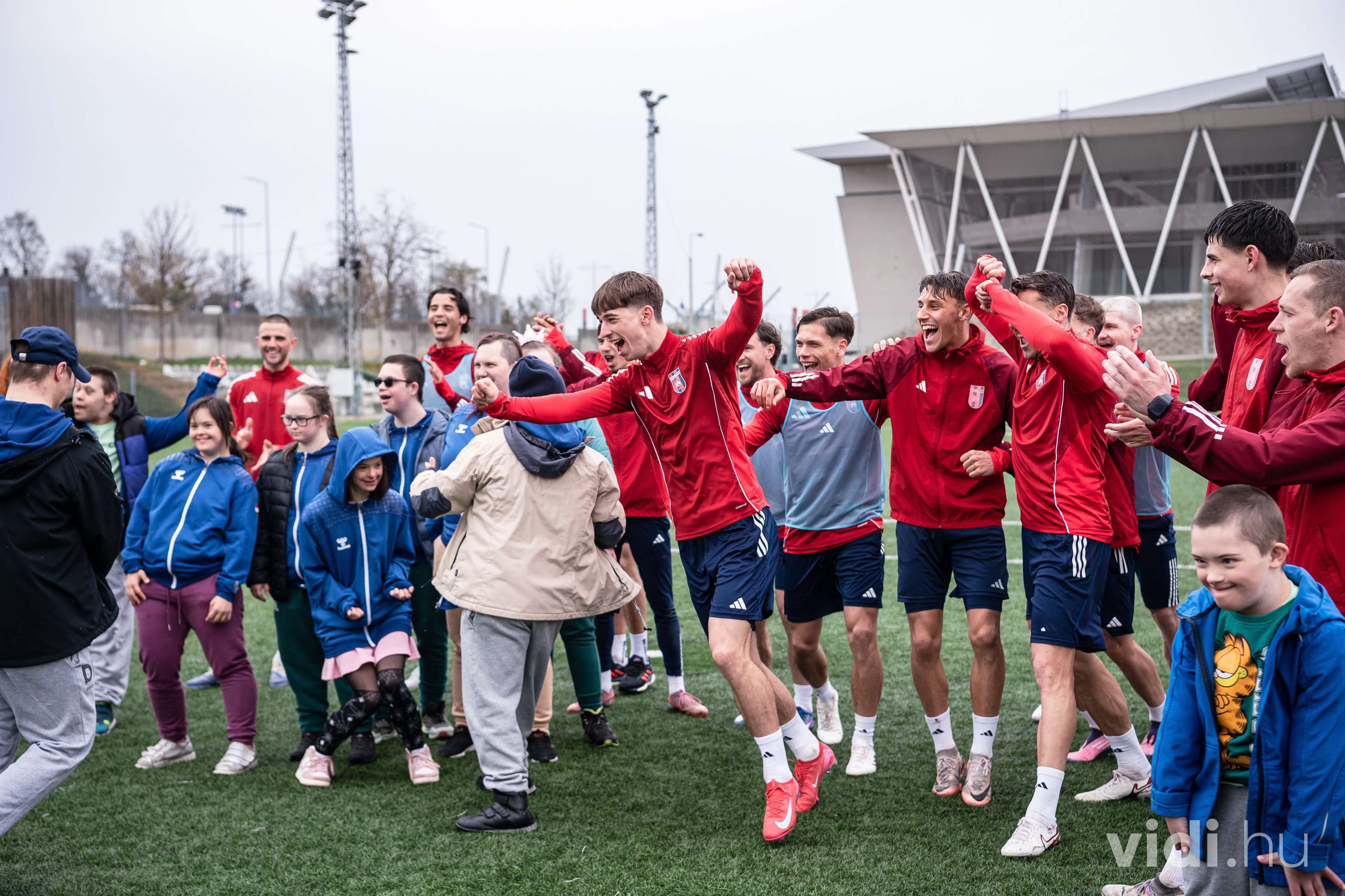 Csütörtökön tíz Down-szindrómás fiatal és kísérőik érkeztek csapatunkhoz. A stadiontúra után nem maradt el a közös focizás sem játékosainkkal.