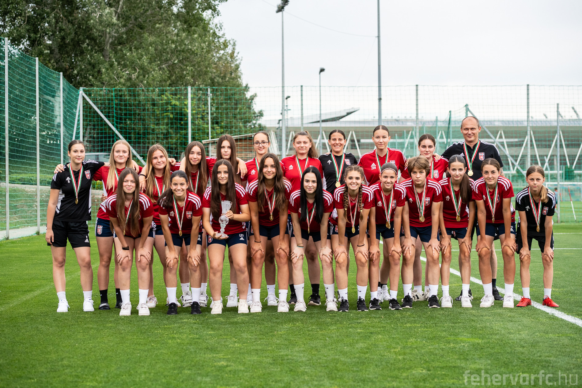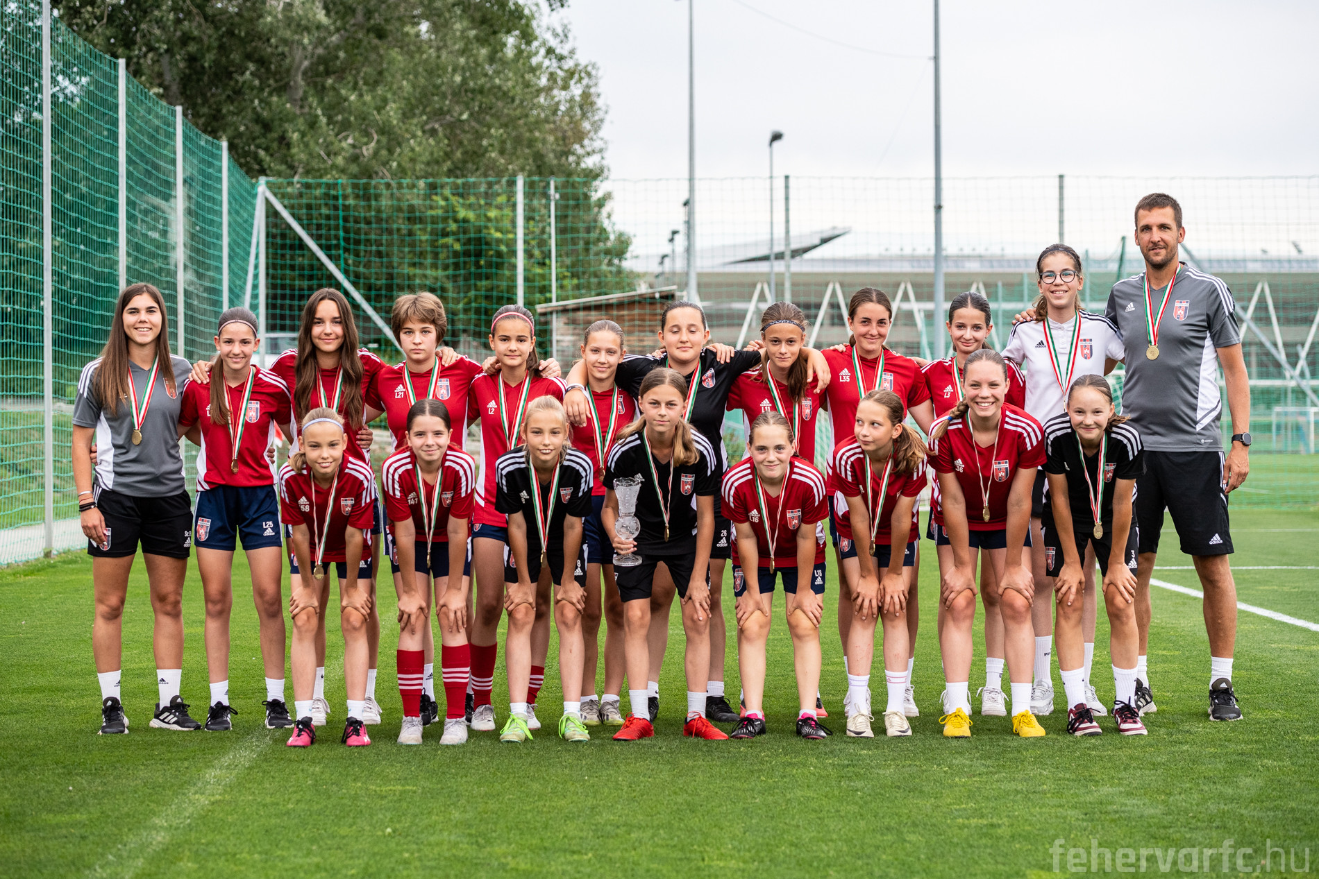 Múlt héten péntek délután a Fehérvár FC edzőközpontjában került sor érmes utánpótlás csapataink köszöntésére. Fiú U15-ös, valamint leány U19-es és U16-os csapatunk az első, fiú U17-es és leány U14-es együttesünk a harmadik helyen végzett a 2023/2024-es szezonban. Az érmeket Simek Péter utánpótlás-sportigazgató adta át a csapatoknak.