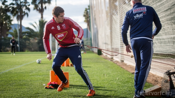 Pölöskei Zsoltnak decemberben volt egy előre eltervezett operációja, ami tulajdonképpen egy ízületi tisztítás volt, egy porcdarabot távolítottak el a bal térdéből. Erre egy korábbi sérülése miatt volt szükség. A beavatkozás jól sikerült, már a rehabilitációs fázis végéhez közeledünk. Az utóbbi időszak legfontosabb feladata az izom visszaszerzése volt. Éppen ezért ő nem a csapattal edzett, hanem külön foglalkoztunk vele. Ma már ott tartunk, hogy a futásokat együtt végzi a többiekkel, a következő feladatunk pedig az, hogy visszatérjünk a mozgás hatékonyságára, hogy a bal lábában újra meglegyen az a tolóerő, ami fontos az ő számára. Ha minden jól megy, és nem jön közbe semmi, akkor legkésőbb a jövő hét elején ismét a csapattal tud majd edzeni Pölöskei Zsolt. Azt mindenképp ki kell emelnem, hogy nagyon jó hozzáállása van „Pölö”-nek, nagyon sokat dolgozott azért, hogy minél gyorsabban újra százszázalékos állapotba kerüljön” – nyilatkozta honlapunknak Purger Szilárd fizioterapeuta.