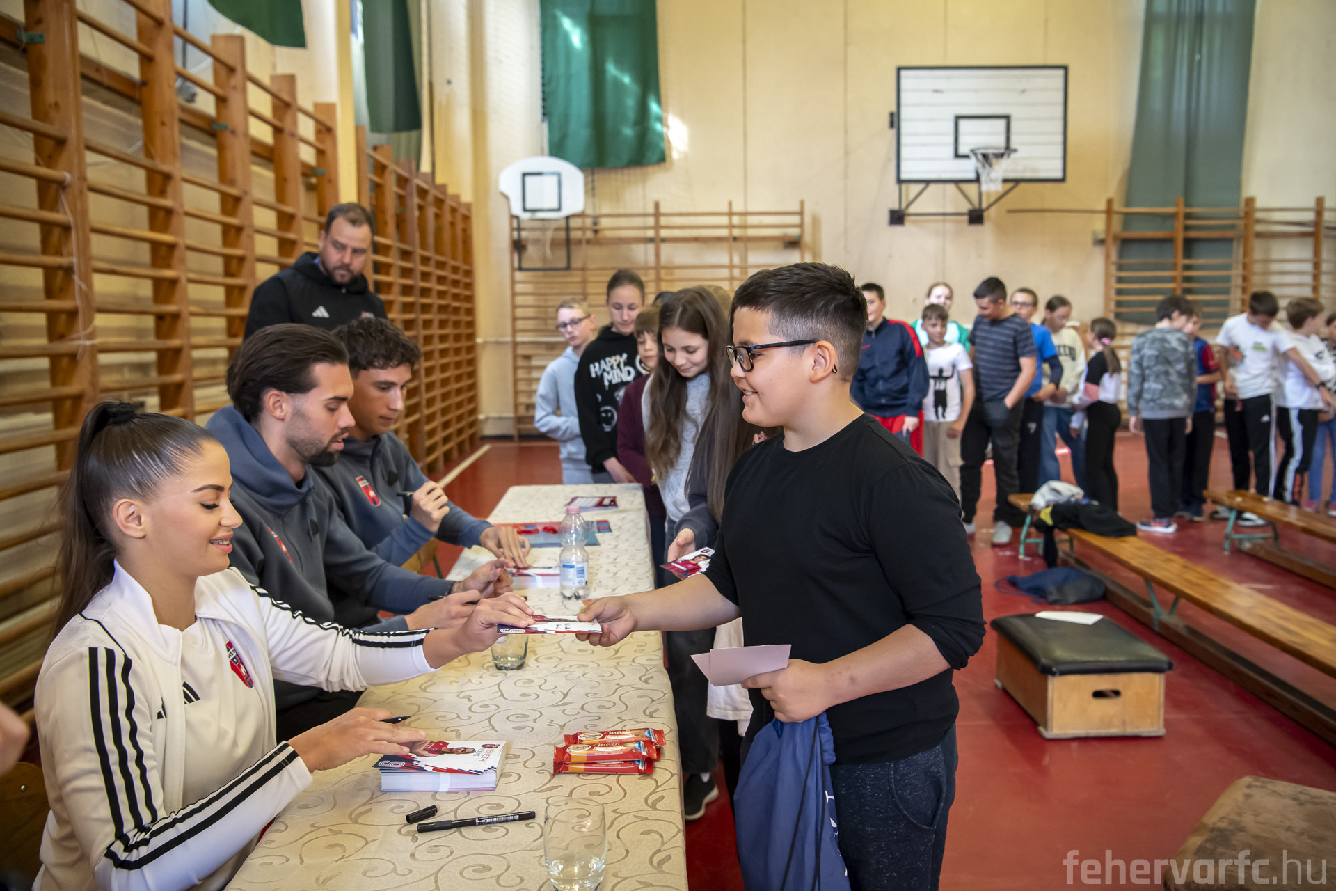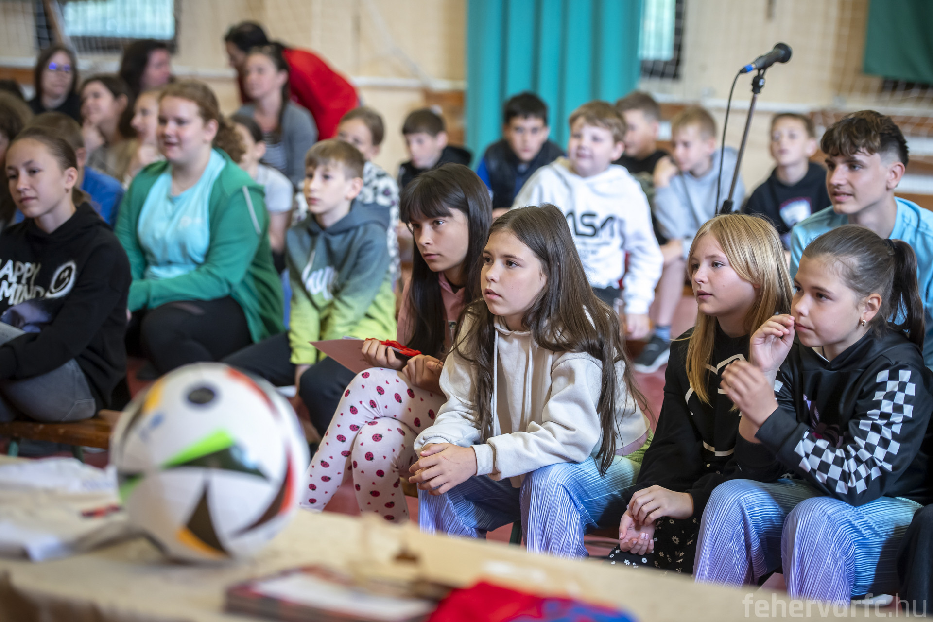 Az iskola tornatermében több mint 70 alsó és felső tagozatos diák várta labdarúgóinkat, akik kezdésként a felnőtt fociig vezető útról, a leküzdött akadályokról, legnagyobb sikereikről és terveikről beszéltek az érdeklődő gyerekeknek. Ezt követően a diákok tehettek fel kérdéseket, többek között kedvenc csapatukról és játékosukról faggatták Matyit, Botit és Noémit, de a szülői támogató háttér is szóba került.