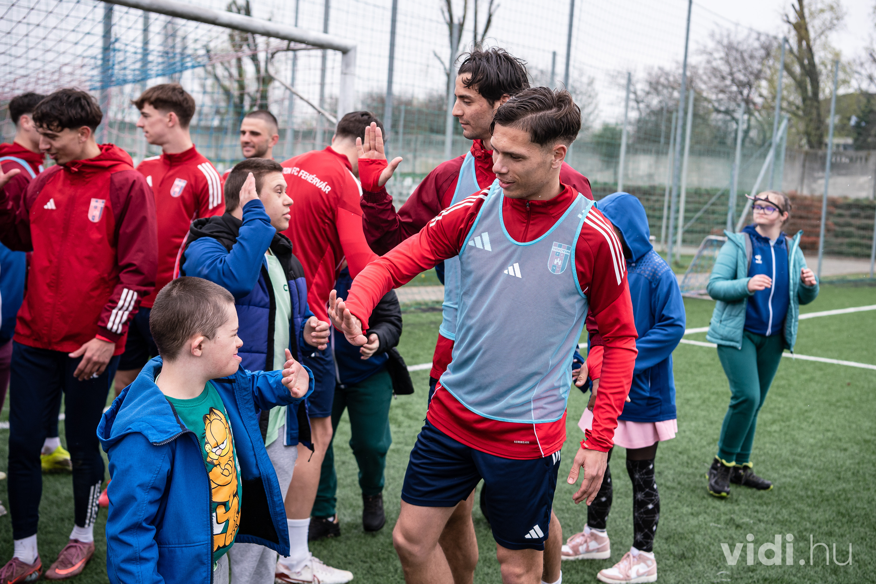 Csütörtök délelőtt 10 fiatal és kísérőik érkeztek a Sóstói Stadionba a budapesti Csalogány DSE-ből. Stadiontúrával indult a program, látogatóink megtekintették a Vidi Múzeumot és a vendégöltözőt, kipróbálták a gyereksarok aktivitásait, végül az edzőpályák felé vették az irányt. Itt játékosaink közös focizásra invitálták őket, a jó hangulatú labdázás közben sokszor rezgett a háló. Természetesen nem maradt el a közös beszélgetés és a fotózkodás sem.