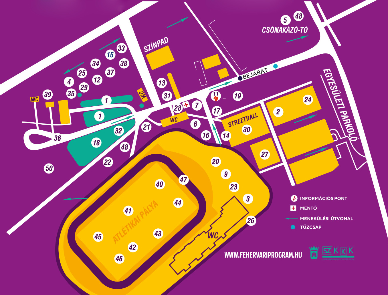 A Vidi-pontnál (a térképen 13-as számmal jelölve) egész nap a mérkőzéseinken megszokott gyereksarokkal várunk majd benneteket valamint a dedikálásra is itt kerül majd sor. A Sportmajálison való részvétel ingyenes.